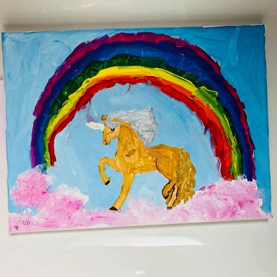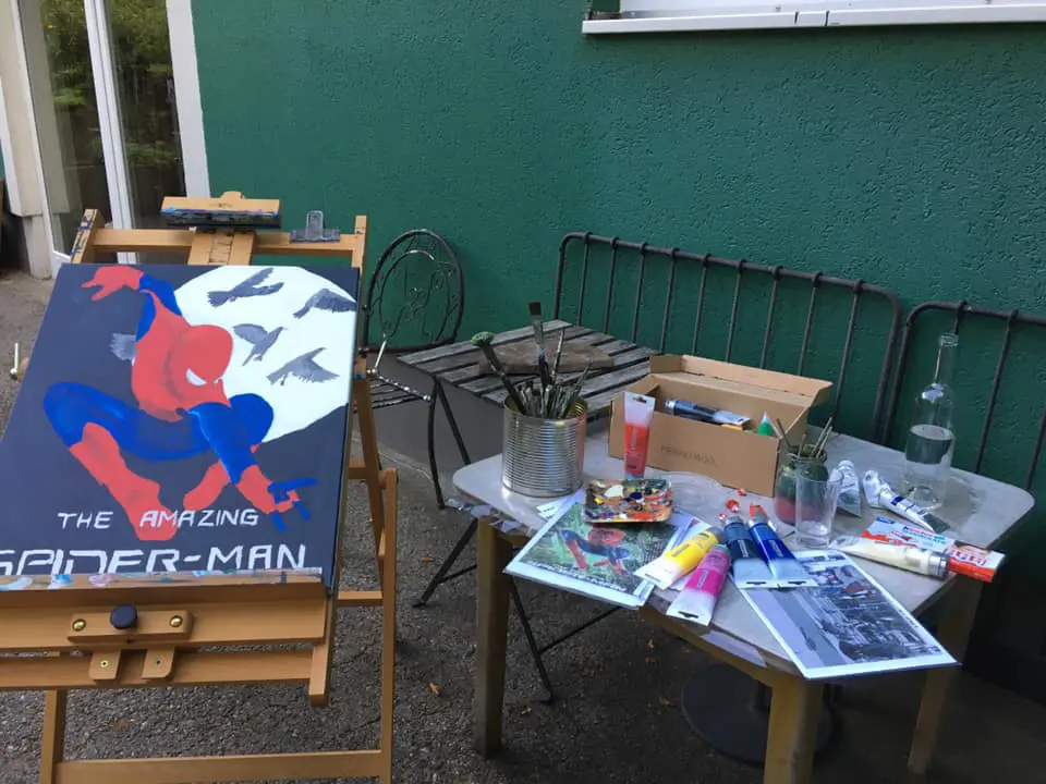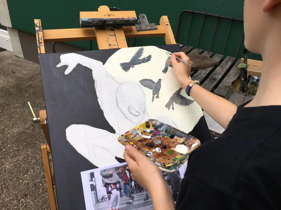 Im Atelier gibt es immer mal wieder auch eine Staffelei für Gäste. Für Kinder, Erwachsene, Freund:innen, Familien, …